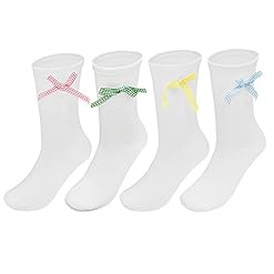 5 Pairs Girls Ladies White Knee High School Socks With Gingham Check Satin Bow
