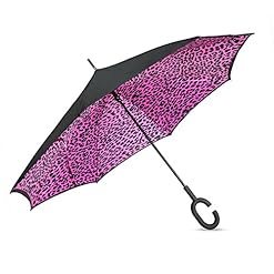 Amagoing Double Layer Inverted Umbrella Windproof Car Reverse Umbrella for Rain Sun(Pink Leopard)