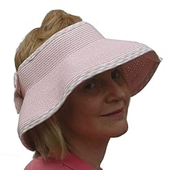 Daily Sports Ladies Roll-Up Golf & Tennis Straw Sun Visor in Pale Pink with Gingham Trim