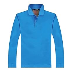 SHANGHAIPAVILION DZ-12 New Men Polo T-Shirt Long Sleeve Cotton Tee Blue L Chest 110CM